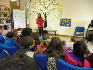 Hora do conto - Apresentação da História "O Pinto Borrachudo" para a turma do 1.º ano