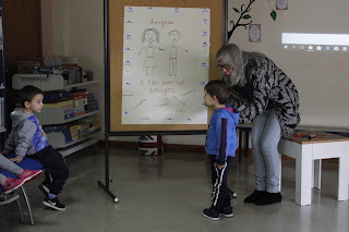 Hora do conto - Apresentação da história "A ovelhinha que veio para jantar", a canção "Tenho um amigo" e construção da teia da amizade para os meninos do 1.º ano