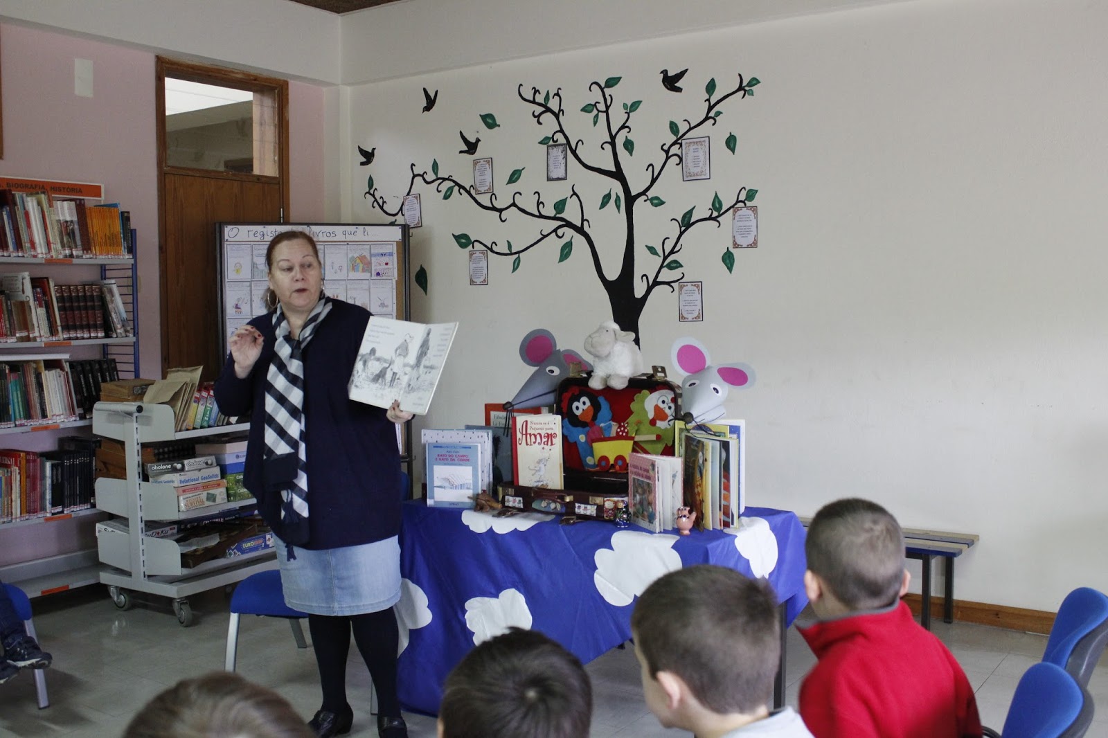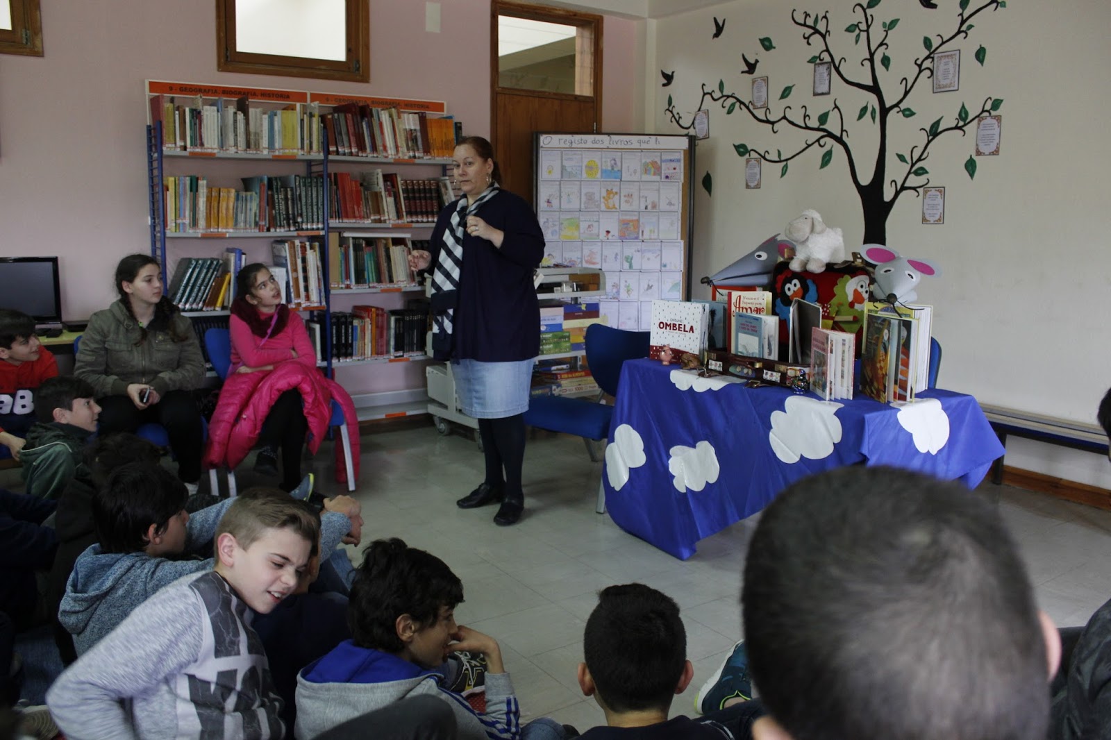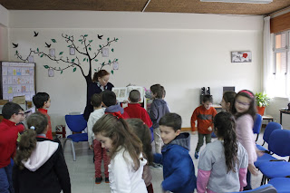 Semana da Leitura - Apresentação de várias histórias para a turma do 1.º ano, contadas pela D. Mariana da Biblioteca Municipal de Seia
