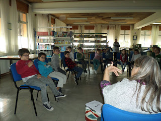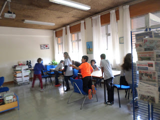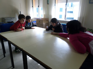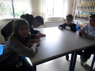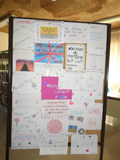 Os alunos iniciaram a atividade, escrevendo no painel temático do mês internacional das bibliotecas escolares, uma frase que os faça ligar à biblioteca.